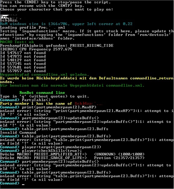 when i start rom/bot path:partyhealer , my priest buffs hisselfe an follows the party leader, but thats all. i doesnt buff the others or heals them. i deleted the "<!--- " in the healer profile, too! but nothing happend. the priest also ...