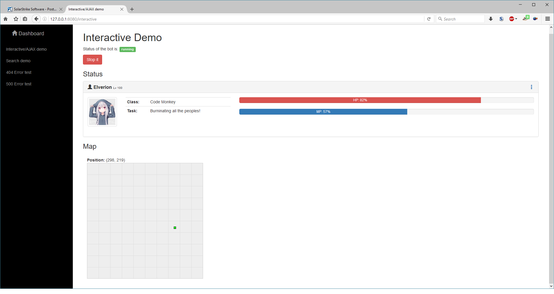- View information about the current status of your system, the bot, activity/status logs, screenshots, see a live-updated map of where your character, enemies, and other players are, or any other piece of data you can pull in for display