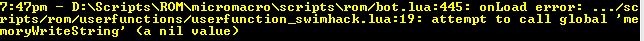 userfunction_swimhack.lua:19: attempt to call global 'memoryWriteString' (a nil value)
