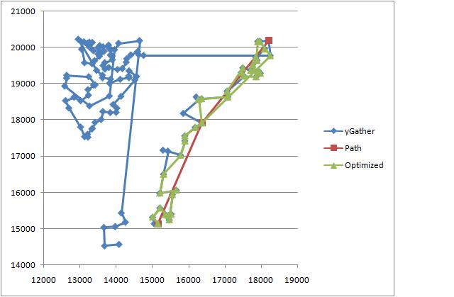 The only real solution I can think of to effectively make ygather a useful plotting tool is to make a second add-on that will mark on your map where you've already plotted while creating a path. I also looked into this but my intelligence just slips off the bricks, out of my reach.