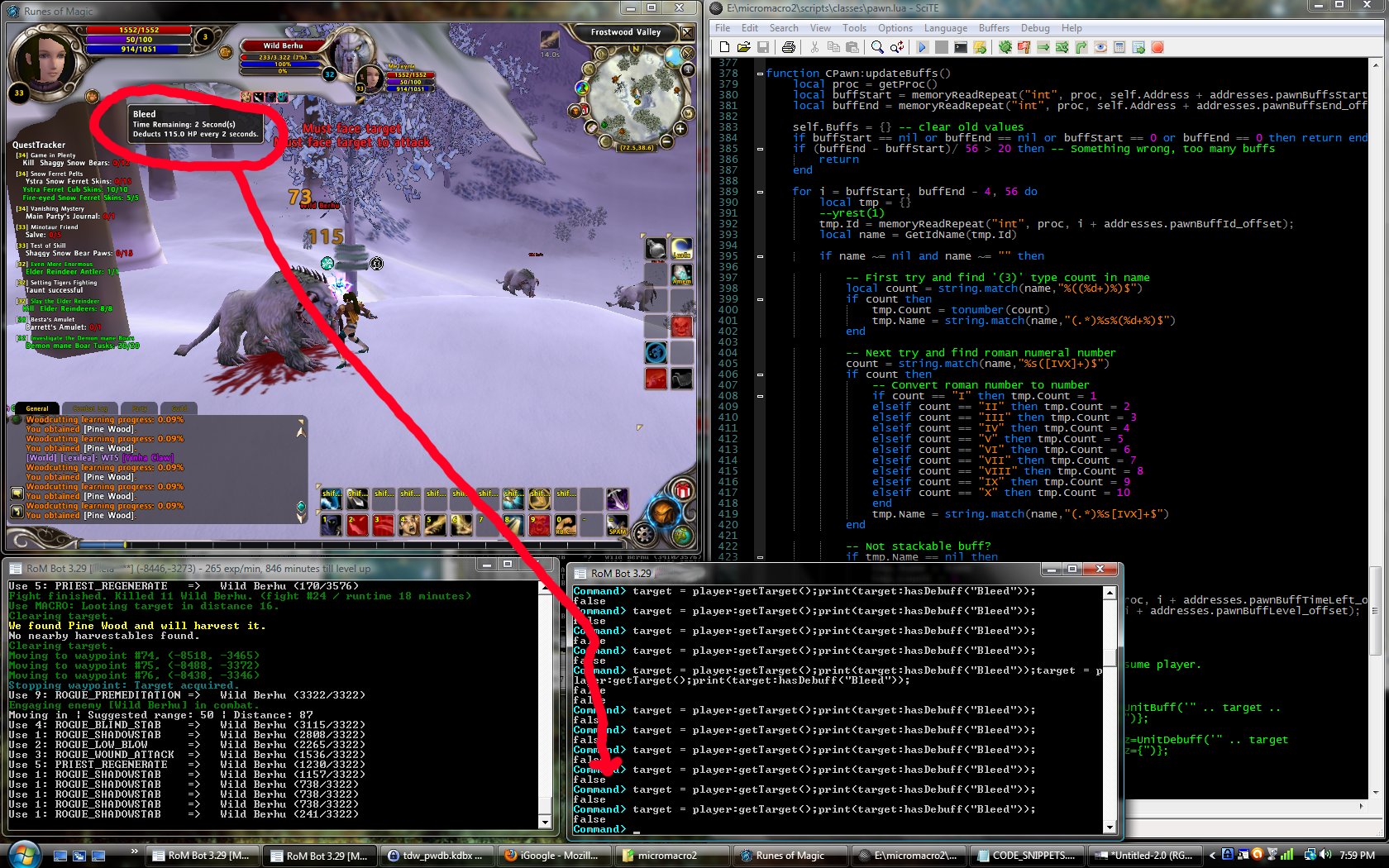 Command> target = player:getTarget();print(target:hasBuff("Bleed"));