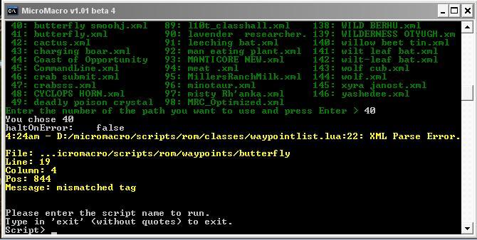 Alright so I ran the ranch millers script that comes with the bot before the patch to the game/bot it was working fine... my game just crashed I got an error in bot functions.lua:607: bad argument #1 now I think ive seen something around about cleaning out my memory right? Never had this error till now