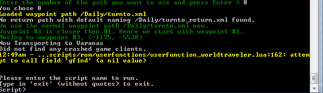 "Example 2: If you want to go from Class Hall in Varanas to Tergothen Bay, you would use takemeto("TergothenBay"); and the bot would take Class Hall -> Varanas Gates -> walk to Snoop at Varanas -> Obsidian Stronghold Snoop -> walk to Battle Square NPC -> Mercenary Square -> walk to Dalanis Envoy -> Dalanis -> walk to Dalanis Snoop -> Southern Janost -> Northern Janost -> Limo Desert -> Land of Malevolence -> Tergothen Bay. "