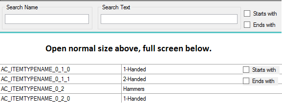 Just downloaded and tried this. You're right, it is fast. But it has a graphics bug that's annoying. When it first opens, the "Starts with" and "Ends with" check boxes are in the bottom border where the "Search Name" and "Search Text" input boxes are located. Resize the window to full screen, and they end up in the middle of the window on top of the database information.