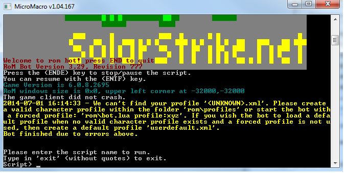 When I run RoM multiple times I get to the screen where I can select the character I want to bot on, but when I clicked the one with the changed race the upper message appears.