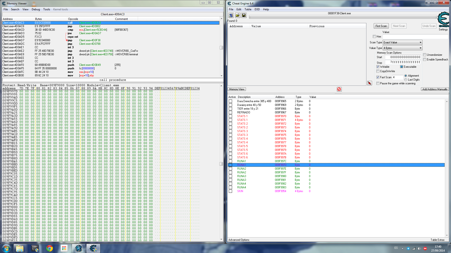 Note: Not all changes made to memory are propagated to the server. So even if it looks like you changed the value in game it actually has no affect.