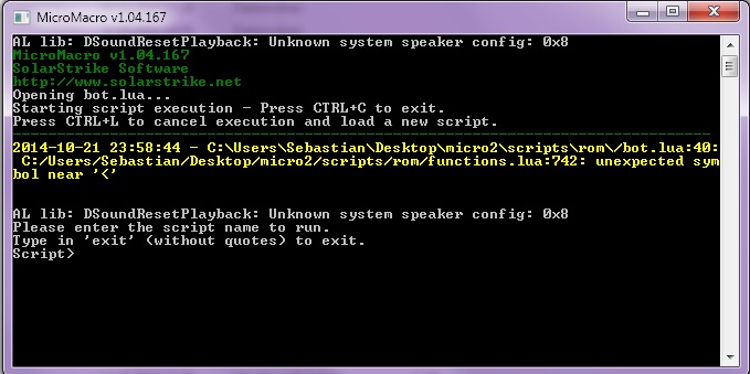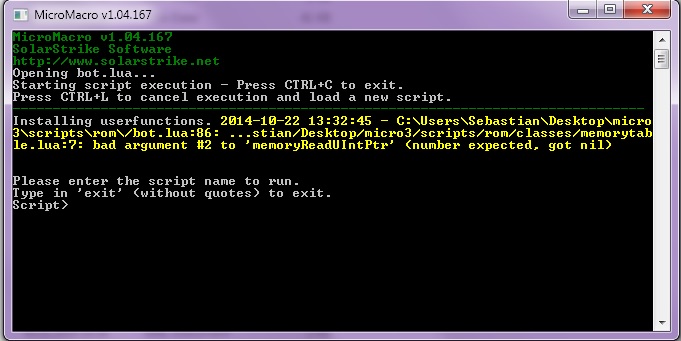I'm not sure. Some users have had trouble in the past running the bot from the desktop. Try moving the micromacro folder elsewhere and run it from there.