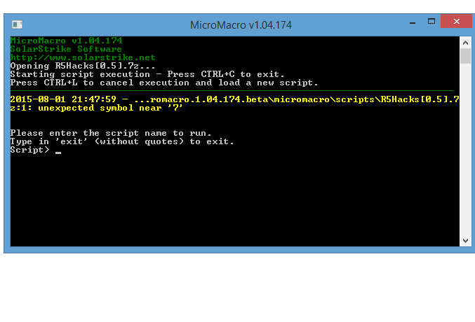 2016-07-14 17:17:57 - C:\micromacro\scripts\R5Hacks/hacks.lua:28: Unable to find 'swimAddress' in module.