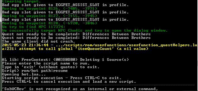 Bill D Cat wrote:Yeah, this was an older waypoint file released before the resume feature was added to the bot. You can edit the beginning of the <onload >section to fix the resume issue.