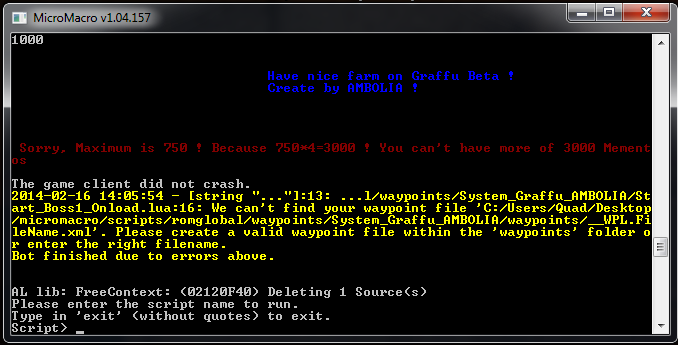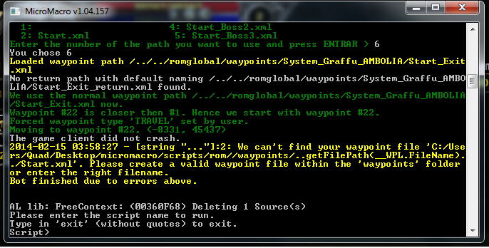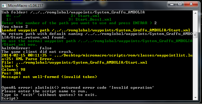 <!-- # 1 --> <waypoint x="-8472" z="45468" y="758" tag="start" type="TRAVEL"> changeProfileOption("LOOT",false); ireset() </waypoint>