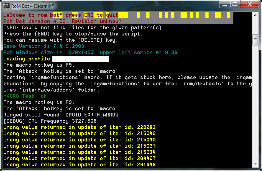 Do you happen to have two versions of the rom bot inside micromacro? Maybe you are running the old one instead the new one? If you had micromacro/scripts/rom and micromacro/scripts/rom740 you would have to run it like rom740/newupdate instead rom/newupdate. If that isn't the case post here your functions.lua and I will try it out.
