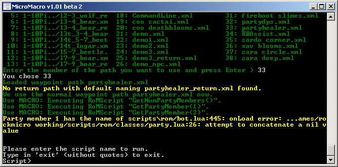 Ok I make all like you said. I comes the same crashe. I also download micromacro new and make svn checkout, then profile named in char name, then also a revert and tried it again. then it says I must be the attack skill in key list. That I do and then it crashes by the next trie.