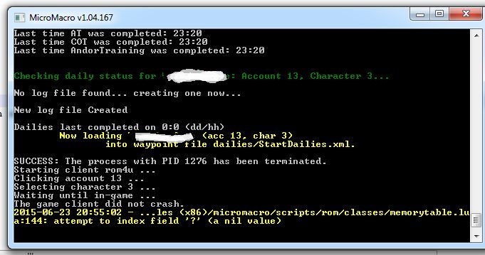 It kills the client, restarts it, logs in the correct character, but then I get an error (see attachment). I'm not sure what's causing the error.