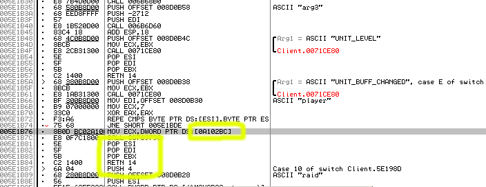 Ok I am going to add in some sections of memory from an old client. See if you can find the current addresses using that method with Ollydbg