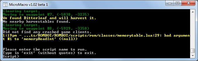 Ok, so I have problem with harvesting. Manually harvesting works ok, but everytime when Im trying to harvest with the bot it crashet the rom client.