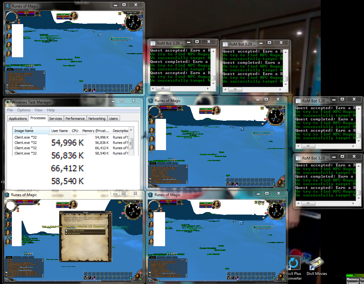 My pc is rather old one, so I can only start two clients at the same time, and they could not do complex works like killing mobs.