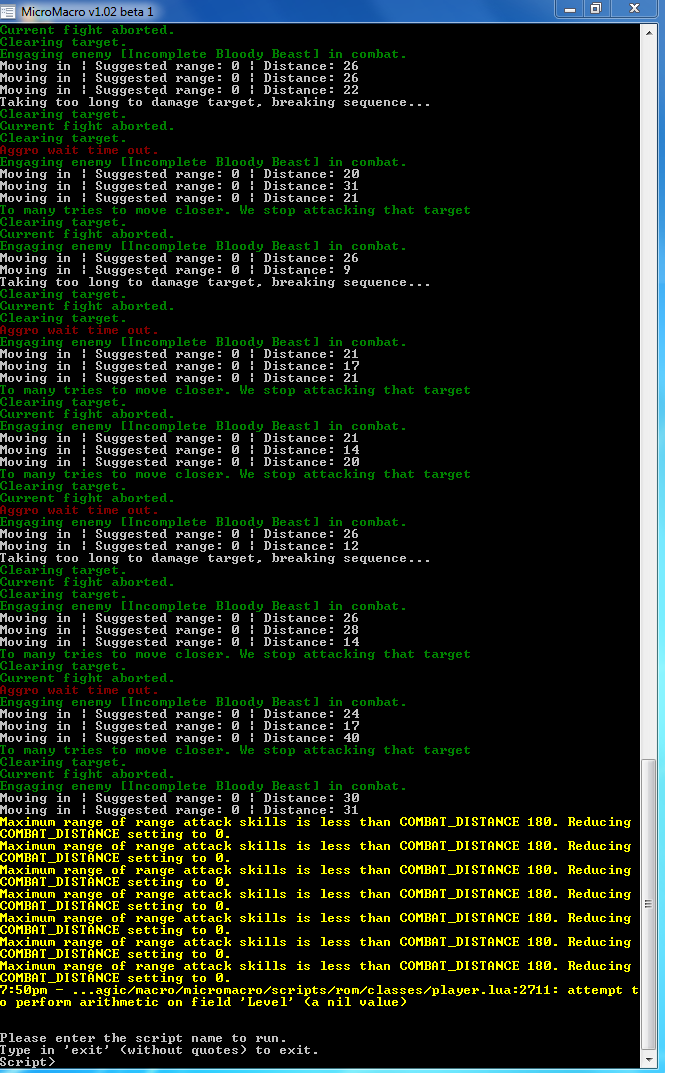 If game crashes then bot will get some sort of error, in this case it was just the attack skill. Another time it will say it had issues reading memory.