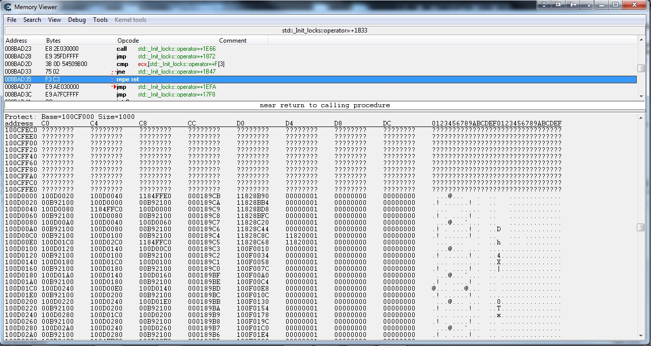 - If you can identify the addess then right click the display and select "Goto address" and enter that address.