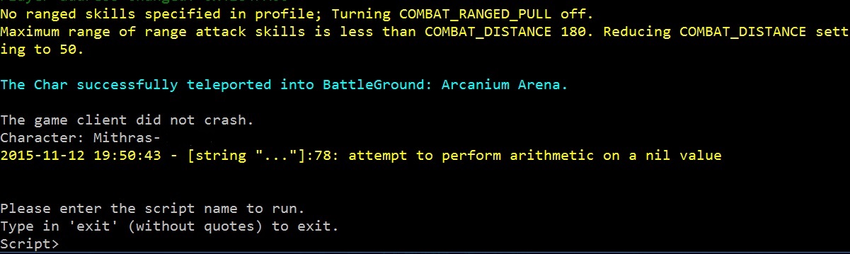 First step is still to make sure you are using the latest version I posted, if you are already using it, then try turning off the prints.thewatcher wrote:Hello and thank you for this script. I have a problem , once the arena over, I find myself right out but the window remains in blue with the message "the char_successfully teleported ..." the script does not this stimulus to get back in the queue