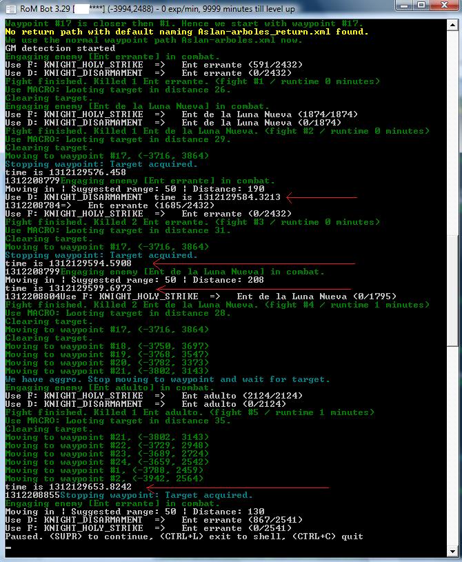 Also, is there an option to logout when whispered by a GM? The bot does not seem to pause... just keeps running along. I did change the pause time from 300 to 50.