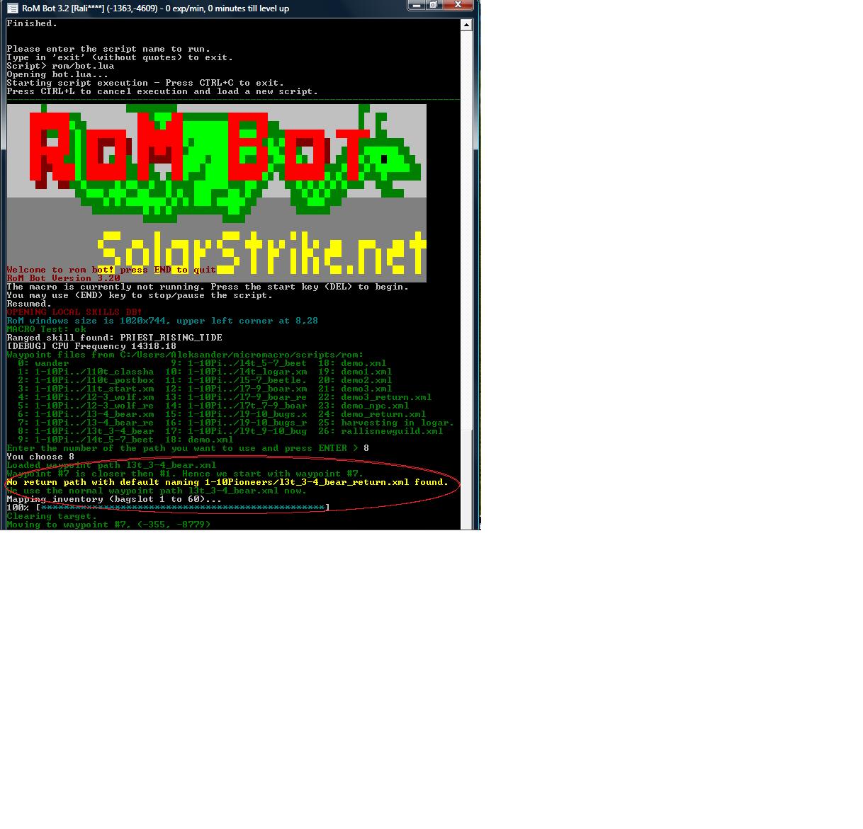 and when i start the bot it says : no return path with default naming 1-10?ioneers/13t_3-4_bear_return.xml found