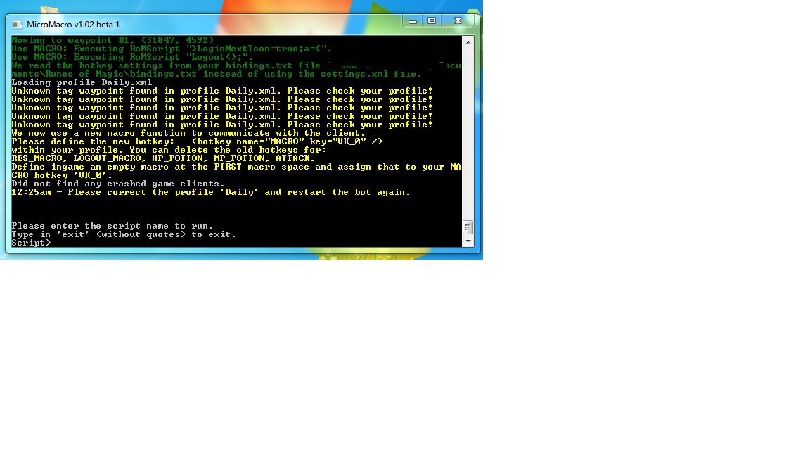 Thanks Lisa, Not sure if this will help, But i stopped playing for like 6-8 months, and when i got back the bot was out of date, so i updated everything, but with the waypoints and the character profiles, i just copied out of the old files, does that make a difference?