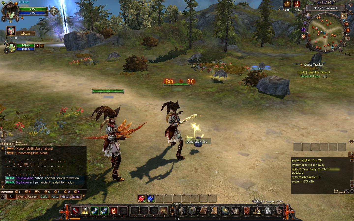 And now that we're on the subject of combat, let me break it down for you: it is terrible. All you do is spam one skill. And when you kill them, you gain soul. What is soul? What is it used for? Where do I keep all these souls I am stealing? I don't know. Monster aggro is practically non-existent, but it's not like that matters, anyways. Monster aggro is also very inconsistent. Sometimes when you're fighting an enemy, if you deselect them (ie. click off of them), apparently they understand that as you saying, "Hey, come on now. That isn't very nice. We should be friends. Lets not fight, OK?" Yeah. They instantly stop fighting you when you switch or cancel target. But only sometimes. The enemies are ridiculously weak and you will probably kill them before they even reach you. Even if you had 10 of them on you, you probably wouldn't take more than 10% damage before killing them all, and that is without even using the butt-load of potions you carry in your back pocket.