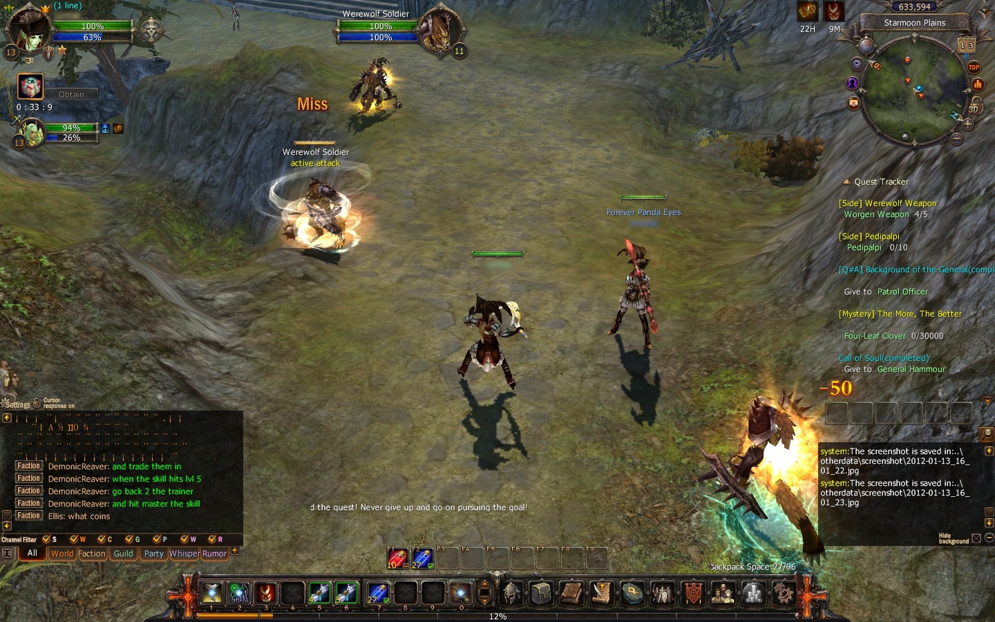 Then, sometimes, you'll find some jerk that just won't take any hits. Every attack you throw at him will just display "Miss." At least this counts towards your skill levels. Since the target will walk around aimlessly as you do not score a hit, nor will enemies ever seem aggressive, you can score tons of free skill points. Oh, right, I forgot to mention, you level up skills by using them x number of times. What I'm saying is, get ready to see people AFK spamming skills in town for free levels. It will happen.