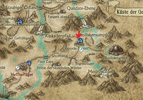 2. This one is @ (german) küste der wehklagen - blutverschmutzter tümpel. with lvl 48/49 you can get a lot of Blend rune an "good-gold-giving cards :)