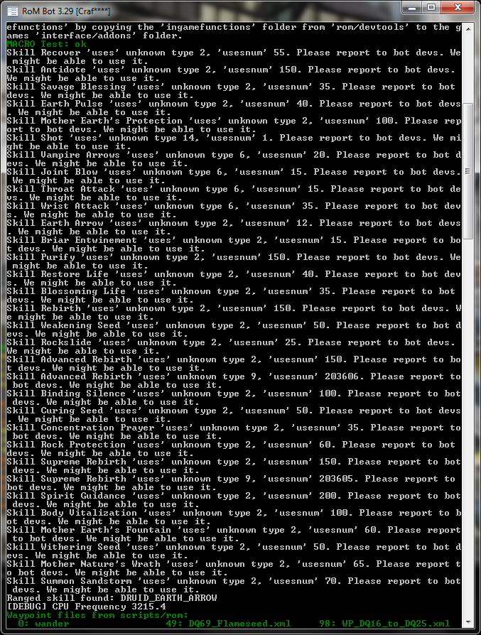 So today was the 5.0.5.2592 update. So i made the normal updates and it will work. My problem is the bot wont sell the items and always says the eggpet is on a bad slot. Ive checked the profile, but its all ok, didnt change a thing since yesterday. Anybody here with the same probs? And last but not least he wont use the honor certificate -.-