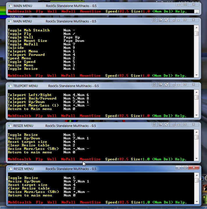 - Starts as a minimized 1 line bar that is always on top and displays the state of the hacks.