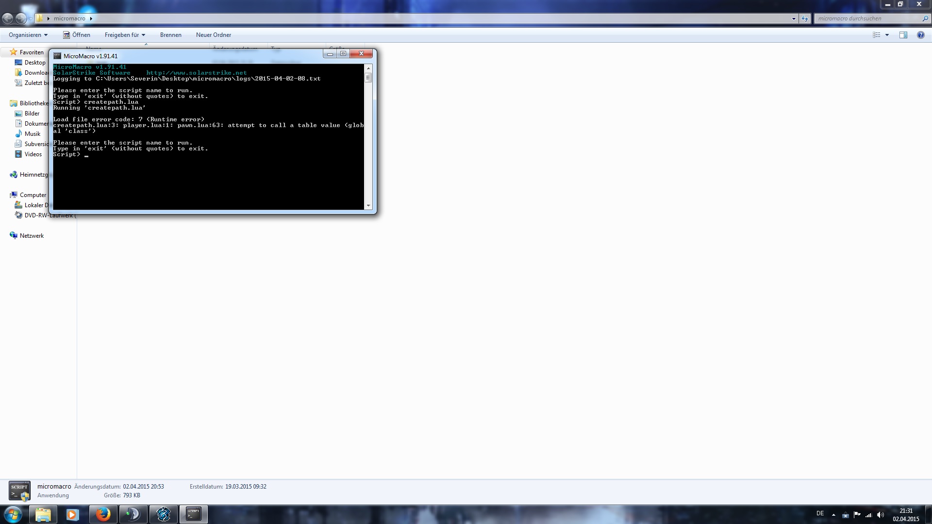 Now , when i start the Micromacro scripts > createpath.lua or other files there comes the message :