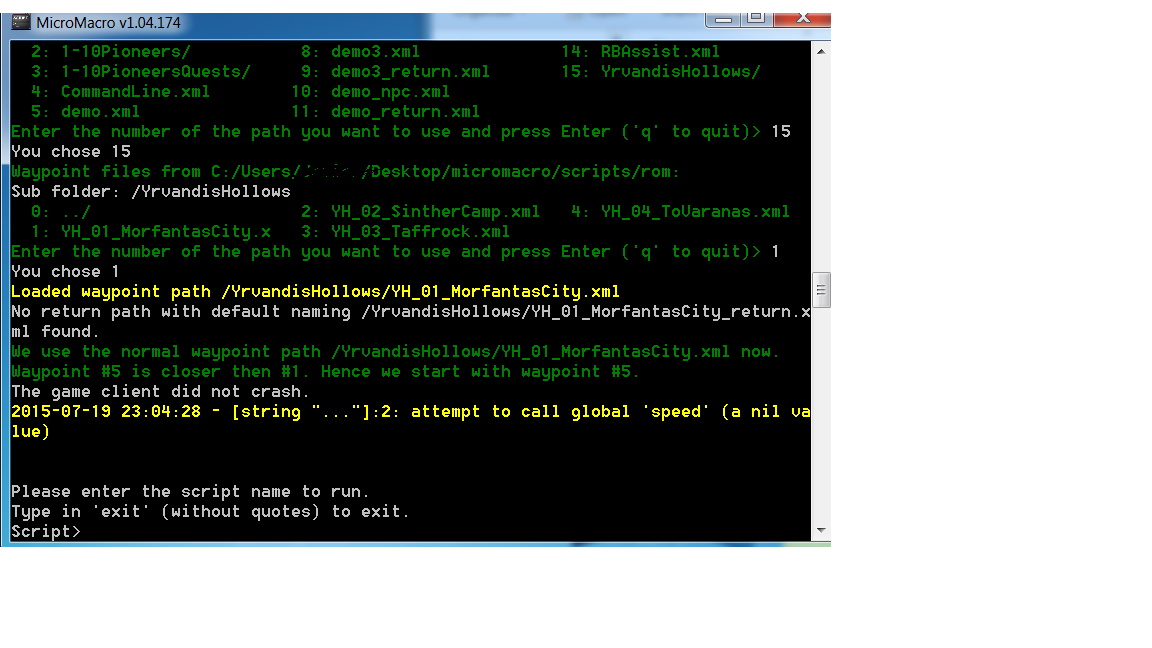 Yeah, I noticed the bot can run close to the instance entrance to target some of the mobs and then get stuck behind one of the walls. I think I've fixed that in the latest upload. If not, it should be easy enough to add another waypoint to the center of that opening so it gets back out correctly.BlubBlab wrote:Part 2 seems to work flawless beside stuck between 241 and 242