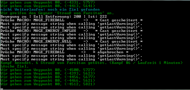 good: the bot uses Skills (just a short try, look at the pic, there are 2 Messages between every skill usage) not so good: everytime when i change the char and load the WP-File the bot stops working and i got this Message: