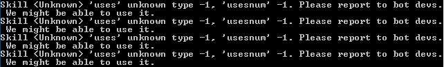Skill <Unknown> 'uses' unknown type -1, 'usesnum' -1. Please report to bot devs.