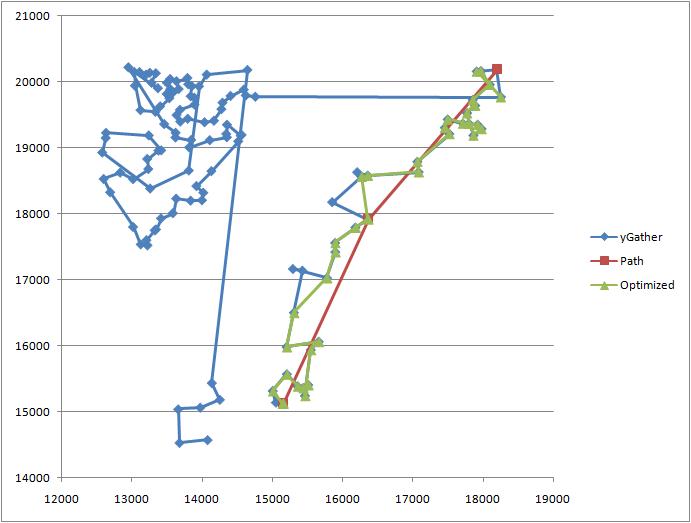The only real solution I can think of to effectively make ygather a useful plotting tool is to make a second add-on that will mark on your map where you've already plotted while creating a path. I also looked into this but my intelligence just slips off the bricks, out of my reach.