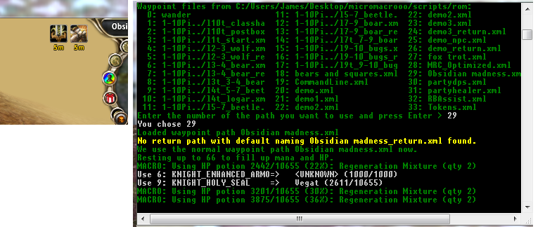 And I get the message: No ranged skills specified in profile; Turning COMBAT_RANGED_PULL off. Then comes loading profile; macro test ok; and then the crash. After the crash then: micromacro/scripts/rom/funktion.lua:607: bad argument #1 to memoryReadByte`<<null>>
