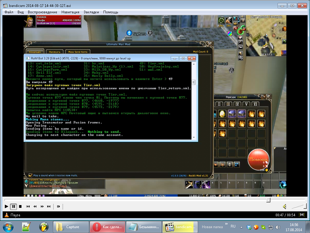 UMM_SendByNameOrId("Emilen","Камень маны ур",10)- Please consider making a small donation to me to support my continued contributions to the bot and this forum. Thank you. Donate