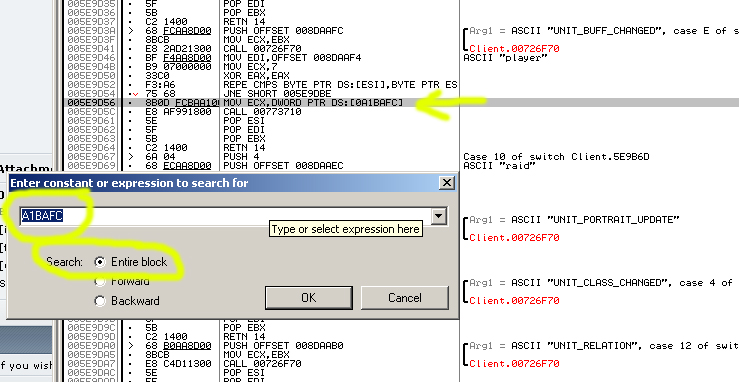 Trying to learn this myself now. Figured out that any time you do a search you always want the search "Entire block" whether it's for the address or the sequence of commands.OneofMany wrote:ok, i thought i give it a try
