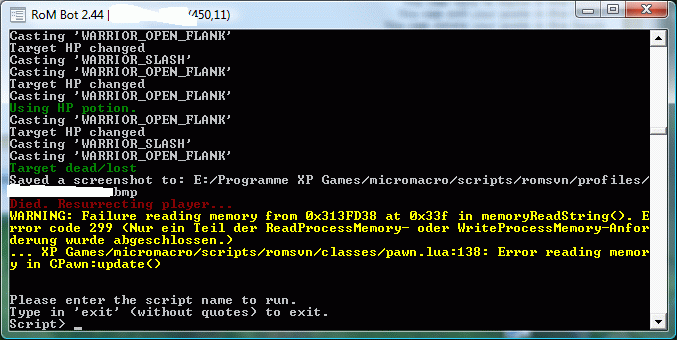 Get an error. Just after resurrection. RoM and MM windows where in the background while I'm using Firefox in the foreground. Two RoM and two MM processes where running. Using SVN 100.