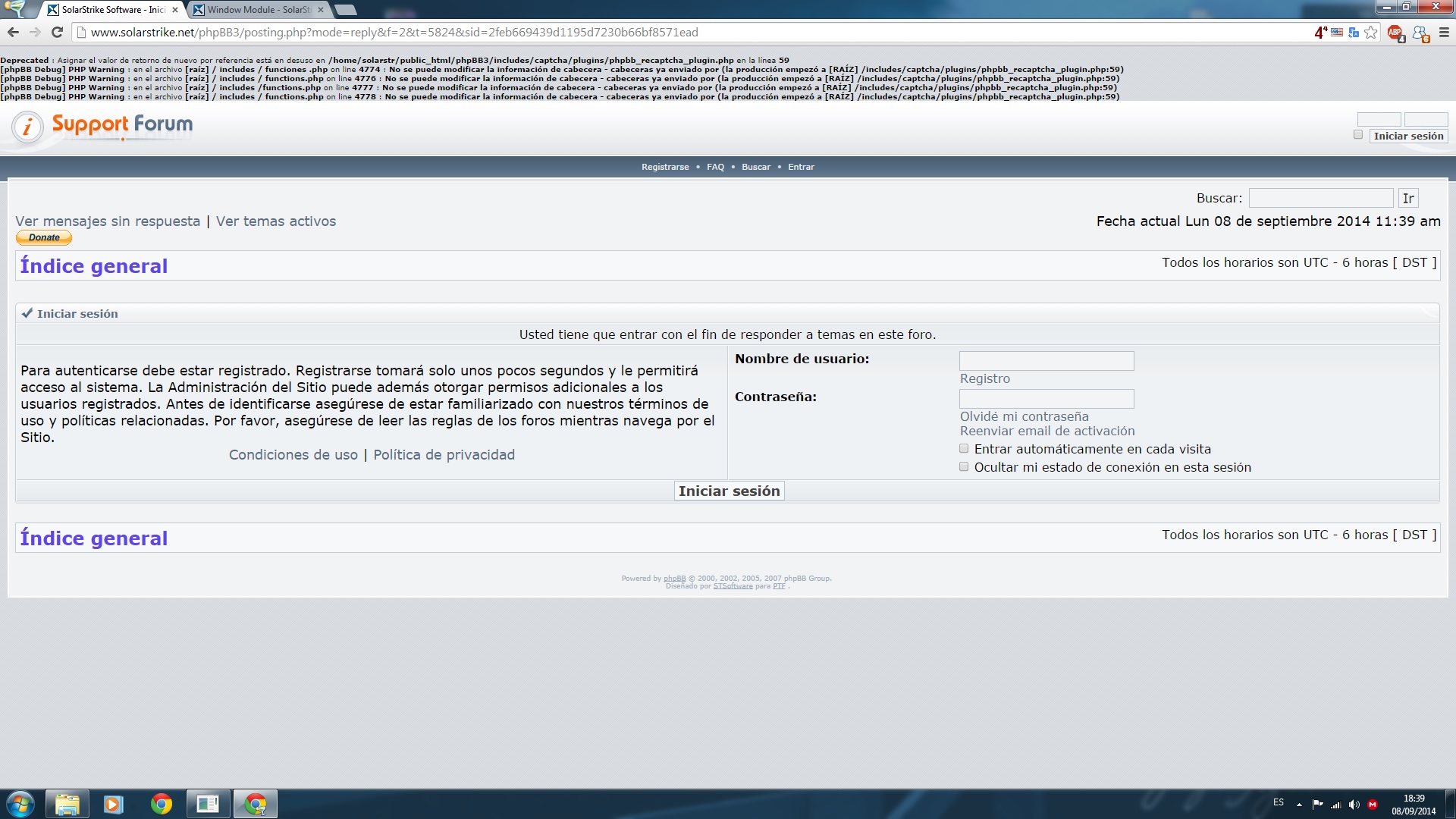 Should be fixed now. It is a fairly minor deprecation warning with the newer version of PHP. Nothing to be alarmed of. Let me know if you see the problem again.