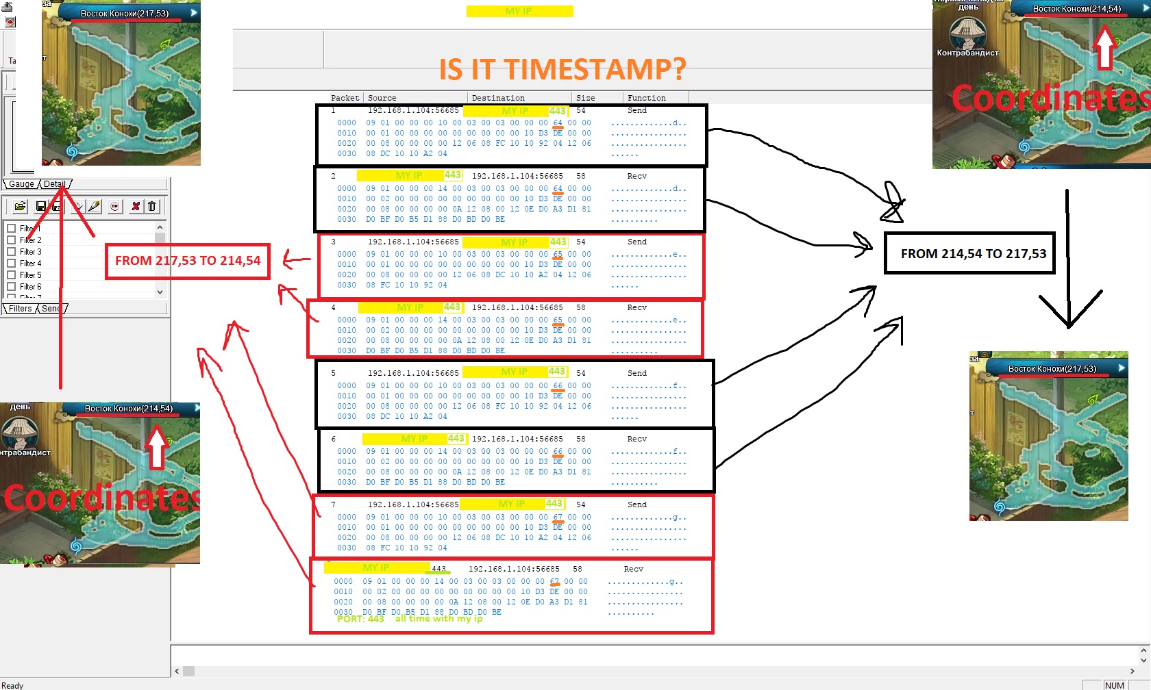 I have disconnect when i try to send any packet ( except when i recieve errors after sent ) , even when i try to "catch" "timestamp". For example, last move have 67 value "timestamp", as in screenshot, and i change packet "timestamp" value to 71 or 69 or 68 still disc. When i try send already sent out packet = disc.