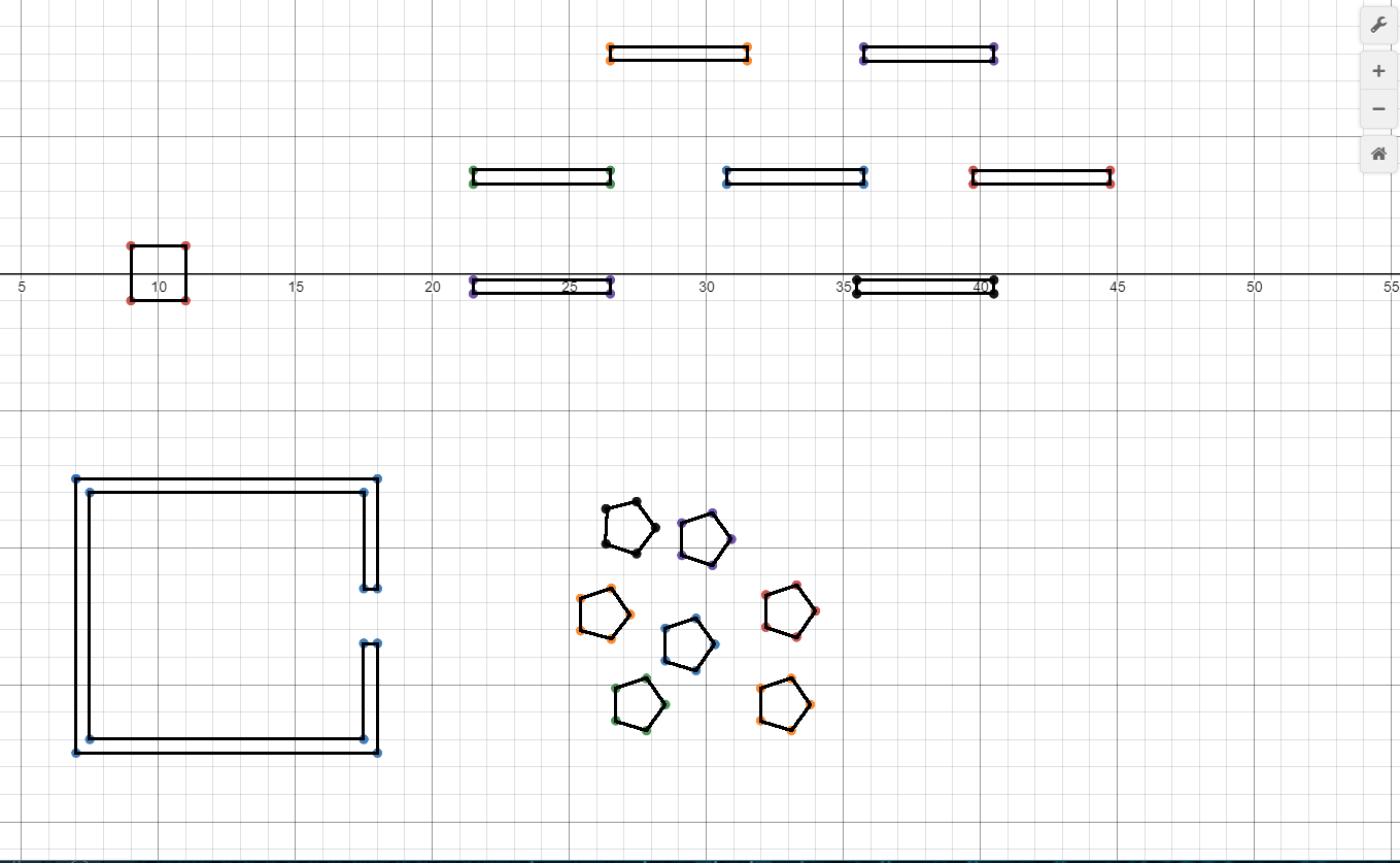 Now that each polygon has been offset, we will also connect each vertex in each polygon to it's neighbors. That is, point 1 connects to point 2, which connects to point 3, and so on until it wraps back to point 1. If we were to visualize out collection of polygons right now, it might look something like this: